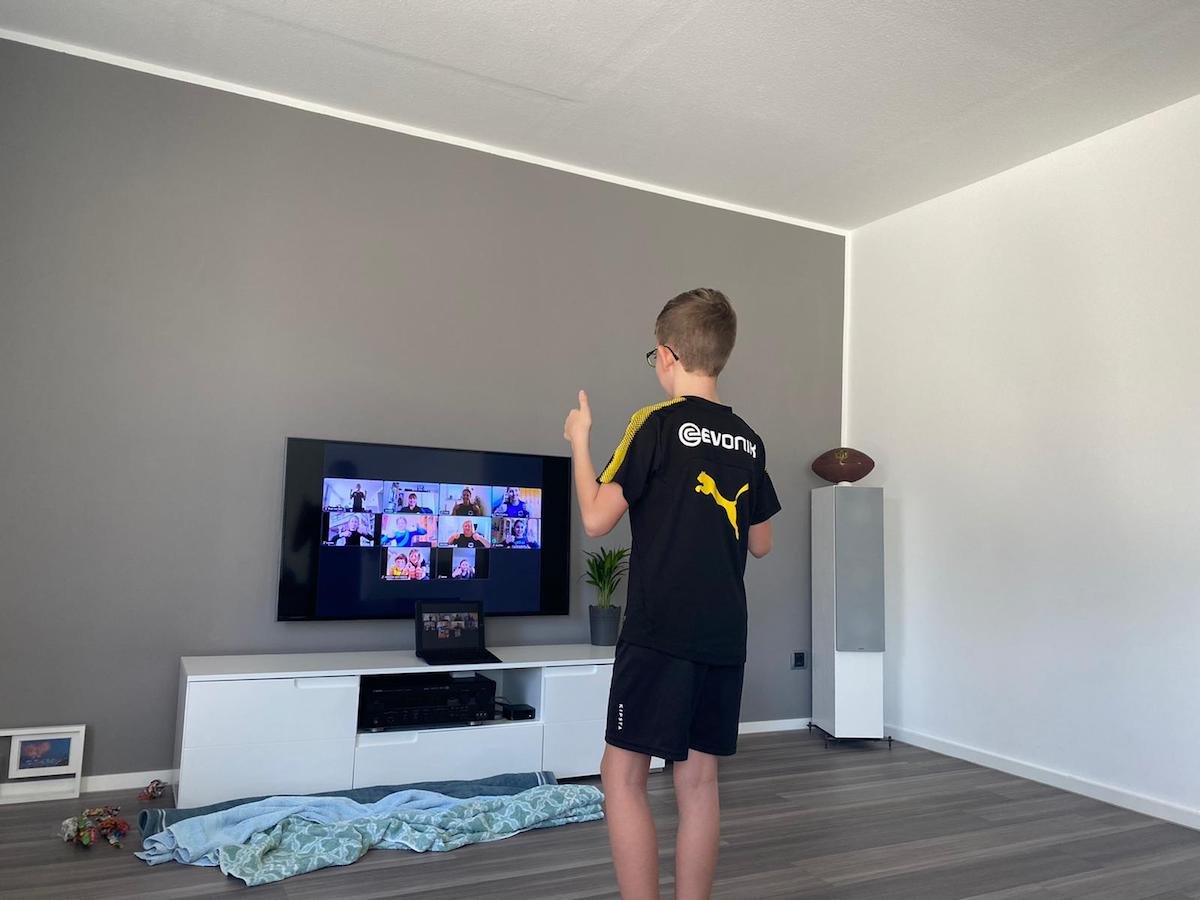 Der Samstagmorgen (17.04.2021) stand für 25 Kinder des TV BörnigSodingen unter dem Motto „Wir turnen im Frühling“. In zwei Gruppen absolvierten die Kinder im Alter von 3-10 Jahren das „Online Kinderturn-Abzeichen“. Dabei wurden sie zu kleinen Marienkäfern und Bäumen, balancierten über wackelige Baumstämme, tanzten die Wintermüdigkeit fort und übten ihre Wurfkünste bei einer Schlammschlacht. Nach einer spaßigen aber auch anstrengenden Stunde haben alle Kinder das Turnabzeichen bestanden. Um gut auf die Herausforderung eines „Online Kinderturn-Abzeichens“ vorbereitet zu sein, nahmen die Trainerinnen im Vorfeld an einer Online-Fortbildung teil.