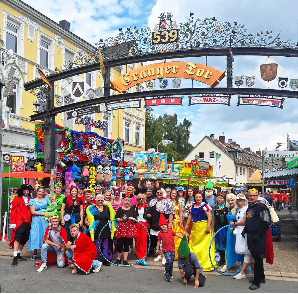 Auch in diesem Jahr waren wir wieder beim Cranger Kirmesumzug dabei. Bei strahlendem Sonnenschein zogen 30 Kinder (unter der Leitung von Tina Mahlinger) und fast 40 Erwachsene aus unseren Sportgruppen (Hulahoop, Tabata, Milewalk, Fit&Fun Dance) von Eickel zum Cranger Tor. Das diesjährige Motto hieß Disneys Turnzauber auf Crange. In bunten und phantasievollen Kostümen waren die Eiskönigin, Olaf der Schneemann, Peter Pan und Wendy, Ursula die Meerhexe und diverse andere Disney Charaktere vertreten. Zum Abschluss gab es im Bayerzelt eine kleine Stärkung in Form der beliebten Erbsensuppe.