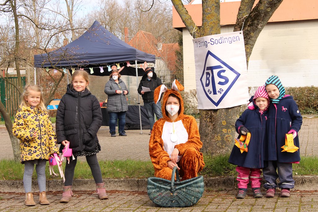 Am 20.3.21 freute sich der TV Börnig-Sodingen 116 Kinder aus dem Verein beim Oster-Drive-In wiederzusehen. Diese Aktion wurde von der Jugend des Vereins organisiert. Die angemeldeten Kinder konnten sich an dem Tag auf dem Parkplatz der Realschule Sodingen an der Castroperstr. in bestimmten Zeitfenstern ihre Ostergeschenke abholen. Alles was die Kinder und Eltern dafür tun mussten war mit einem Osterkörbchen mit dem Auto, zu Fuß oder dem Fahrrad vorbeizuschauen. Die Anleitung für das Körbchen wurde vorher an die Kinder ausgehändigt oder es bestand die Möglichkeit Online eines gemeinsam mit Jessica zu basteln. Der Osterhase verteilte bunte Eier und seine Helfer füllten das Osterkörbchen mit Süßigkeiten und tollen Überraschungen. Der Verein bedankt sich in diesem Zug noch einmal bei der Firma Hase für die gespendeten FFP2 Masken.