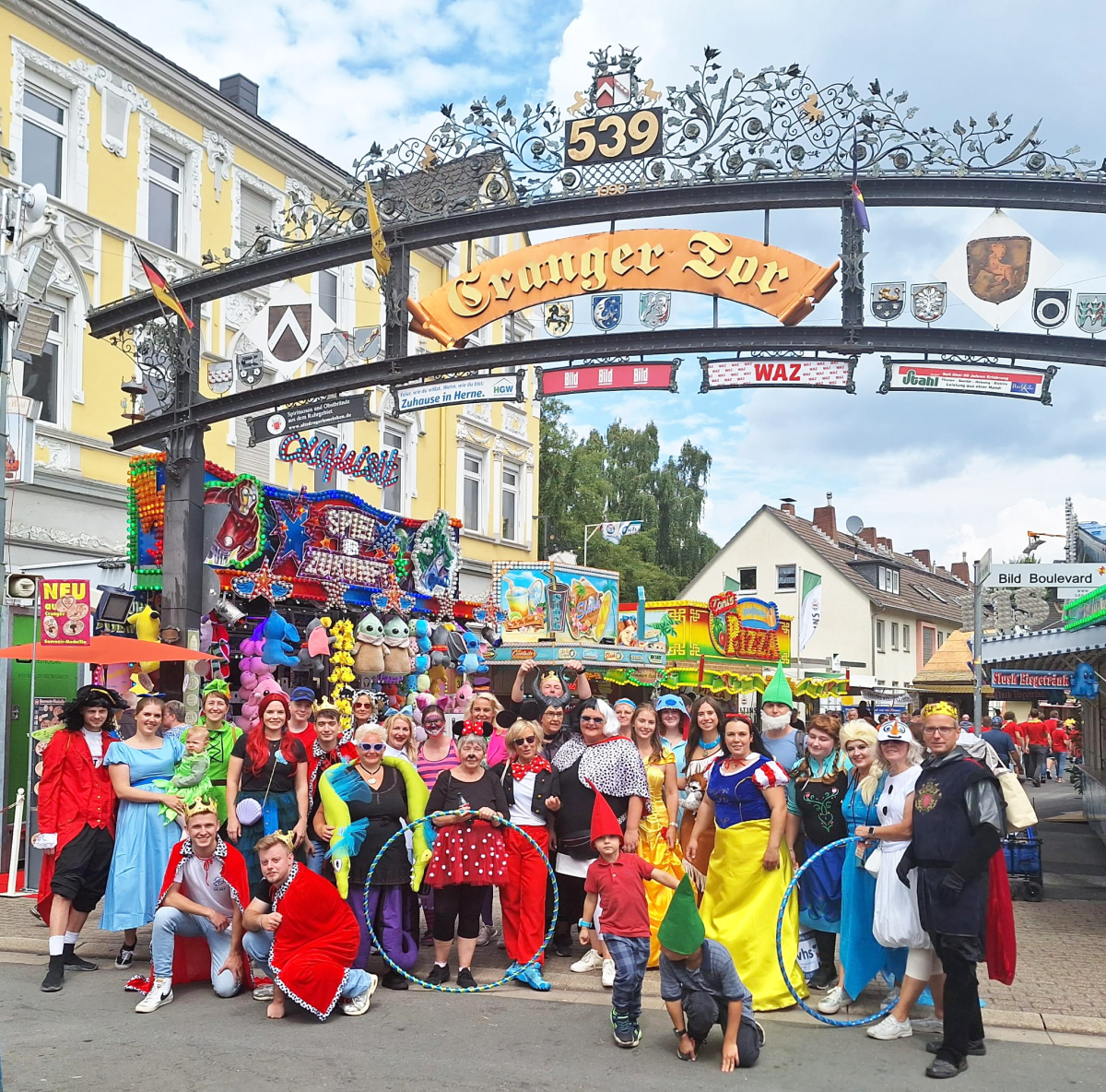 Auch in diesem Jahr waren wir wieder beim Cranger Kirmesumzug dabei. Bei strahlendem Sonnenschein zogen 30 Kinder (unter der Leitung von Tina Mahlinger) und fast 40 Erwachsene aus unseren Sportgruppen (Hulahoop, Tabata, Milewalk, Fit&Fun Dance) von Eickel zum Cranger Tor. Das diesjährige Motto hieß Disneys Turnzauber auf Crange. In bunten und phantasievollen Kostümen waren die Eiskönigin, Olaf der Schneemann, Peter Pan und Wendy, Ursula die Meerhexe und diverse andere Disney Charaktere vertreten. Zum Abschluss gab es im Bayerzelt eine kleine Stärkung in Form der beliebten Erbsensuppe.