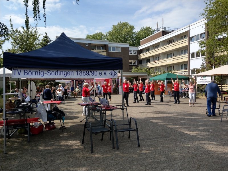 unter diesem Motto stand der Gesundheitstag im Else-Drenseck-Seniorenzentrum. Im Rahmen der Quartiersarbeit beteiligte sich der Turnverein Börnig-Sodingen 1889/90 e.V. hierbei mit einer Vorführung und der Aufforderung zum Mitmachen. Die Teilnehmer hatten sehr viel Spaß bei herrlichstem Wetter. An einem Informationstand gab es die Möglichkeit, sich rund um den Turnverein mit all seinen Möglichkeiten zu informieren und die sportliche Seite aufzufrischen. Der Verein ist zertifiziert im Bereich des Reha-Sports und hat auch gerade für die Älteren eine soziale Aufgabe, das Miteinander bei Bewegung zu fördern.