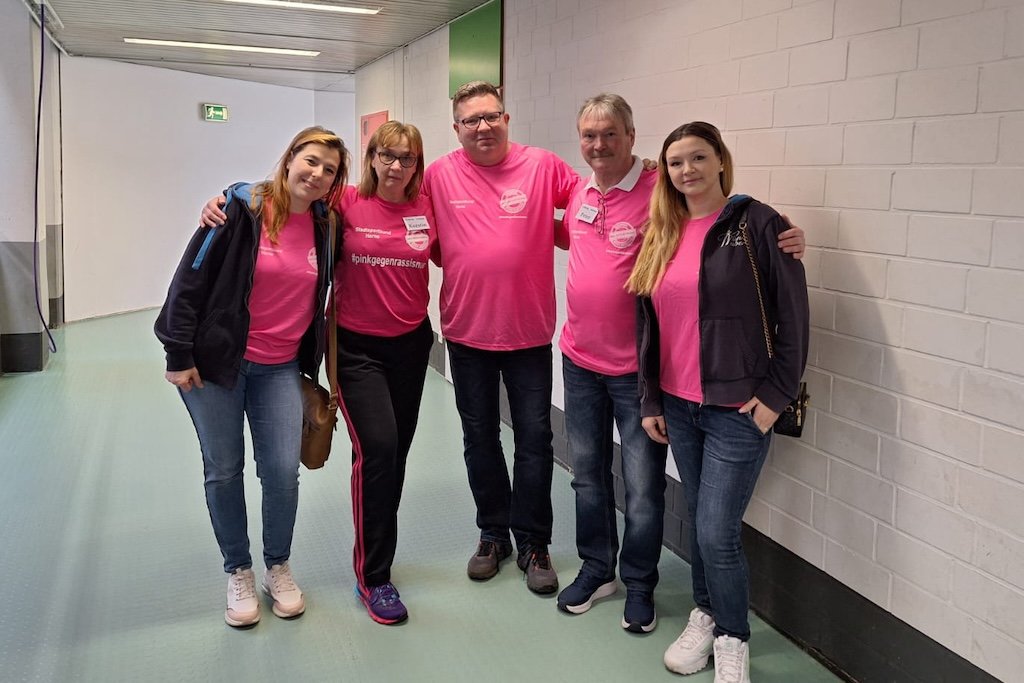 Im Rahmen der jährlichen Aktion „Pink gegen Rassismus“ hatte der TBS reichlich Infomaterial über PLANB ausgelegt und Spenden der Besucher:innen gesammelt. „Dabei kam schon eine Menge zusammen und wir haben die Summe dann noch etwas aufgestockt“, so TBS-Geschäftsführer Marcus Greff. Die Aktionswochen „Pink gegen Rassismus“ finden jährlich statt, dahinter steckt eine Initiative des Landessportbunds. Der organisierte Sport in NRW setzt damit ein sichtbares Zeichen für Offenheit und Toleranz